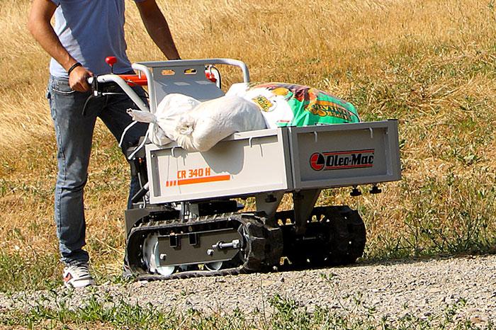 Per trasportare in campagna gli attrezzi per la raccolta delle olive e, dopo la raccolta, per trasportare le olive dall’oliveto al frantoio o al luogo in cui le conservi temporaneamente in attesa della spremitura, puoi usare una motocarriola piccola, tipo la CR 340 K di Oleo-Mac. In grado di muovere fino a 350 kg è dotata di retromarcia e può essere utilizzata su terreni pianeggianti, in collina ma anche negli oliveti disposti su terrazzi, collegati da rampe, tipici di certe zone d’Italia.