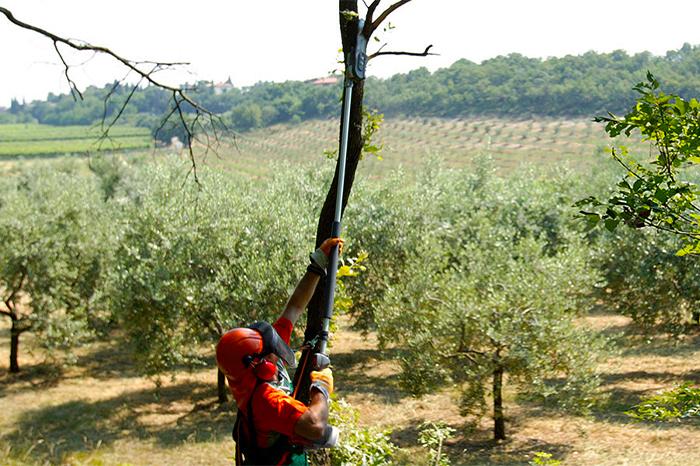 • Tagli senza fare tree climbing, una tecnica di arrampicata e lavoro sugli alberi da specialisti che si fa con motosega da potatura.