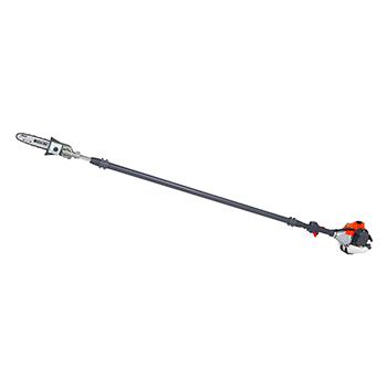 Tralasciamo i potatori telescopici a mano e restringiamo il campo ai potatori telescopici a motore, che hanno un sistema di taglio con barra e catena identico a quello di una motosega. Come il potatore a scoppio professionale PPX 271 di Oleo-Mac da 1 kW che monta barre da 25 cm, al pari di una motosega da potatura.