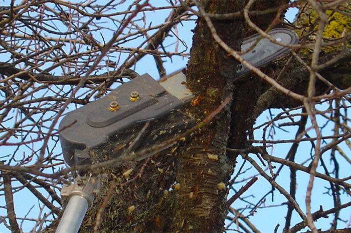 In più, nel caso degli alberi da frutto, con il potatore telescopico: